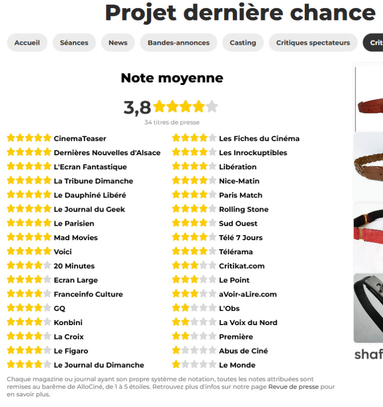 Щоправда, французькі видання «Première» та «Le Mond» поставили фільму досить низькі оцінки.