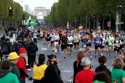 12 квітня Париж знову став містом великого бігу. Щорічний марафон, один із наймасштабніших у світі, зібрав цього року майже 60 тисяч учасників із понад 120 країн. Уздовж маршруту — від Єлисейських полів до авеню Фош — за подією спостерігали сотні тисяч глядачів. Траса залишилася класичною: 42 кілометри і 195 метрів через головні символи французької столиці — Лувр, Нотр-Дам, набережні Сени, а також Венсенський і Булонський ліси. Водночас організатори наголосили на нових пріоритетах: цьогоріч марафон вперше максимально відмовився від одноразового пластику, підкреслюючи екологічний вимір події. За офіційними даними, майже половина учасників долали марафонську дистанцію вперше, а частка жінок сягнула рекордних показників. Це вкотре підтверджує зміну самого характеру події — від змагання елітних спортсменів до масового досвіду, де особиста історія часто важить більше за фінішний час. Саме такі історії цього року стали центральними.