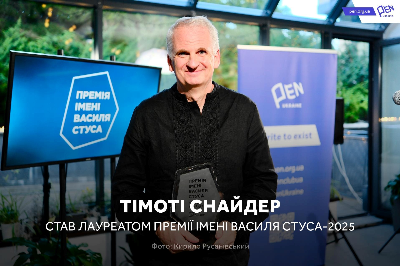 The award ceremony took place on September 11 in Kyiv, hosted by PEN Ukraine. The Stus Prize is awarded annually to recognize intellectuals and cultural figures for their significant contribution to Ukraine’s cultural life and civic resilience. In his acceptance speech, Snyder emphasized the importance of truthfully portraying the war in Ukraine through the works of Ukrainian poets and writers, whose creativity captures the essence of the conflict. He expressed gratitude to those who continue to create despite extremely difficult circumstances. According to Volodymyr Yermolenko, head of the award jury, Snyder is one of the most consistent and powerful voices in the world in support of Ukraine. His views resonate with the ideas and life choices of Ukrainian, Central and Eastern European dissidents, among them Vasyl Stus himself. Timothy Snyder (born 1969) is an American historian, author, and professor at Yale University. He specializes in the history of Central and Eastern Europe and studies totalitarianism, the Holocaust, and the Soviet regime.